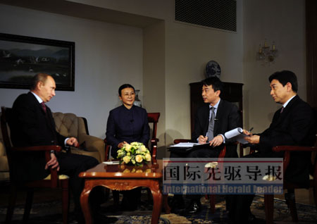 《國際先驅導報》記者彭樹杰、錢彤、王作葵發(fā)自北京 “今天,我以我個人的名義,代表俄羅斯領導人和俄羅斯人民祝賀中華人民共和國成立60周年,祝愿中國每個家庭幸福安康!10月13日,正在中國進行正式訪問的俄羅斯聯(lián)邦政府總理普京在俄駐華使館接受了新華社《國際先驅導報》等媒體的聯(lián)合采訪。采訪內容節(jié)選如下。