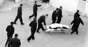 “李洪斌身體特別好,反抗得很厲害”。當時李用鐮刀挾持著女人質,幾個警察圍住了李洪斌,用警棍和腿踢暈了李洪斌,解救了人質。高博隨后沖出,將一名民警刺傷后,向東北方向跑,幾個警察跟隨其后,并開槍將其擊斃。