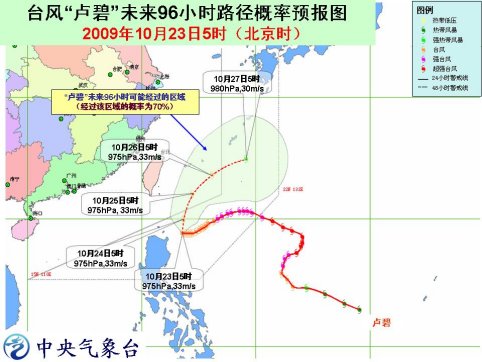 受“盧碧”和南下弱冷空氣的共同影響,23日白天至夜間,臺(tái)灣以東洋面、巴士海峽、巴林塘海峽、臺(tái)灣東南部沿海將有8-10級(jí)大風(fēng),部分海域或地區(qū)陣風(fēng)可達(dá)11-12級(jí);“盧碧”中心經(jīng)過的附近海域的風(fēng)力有11-12級(jí),陣風(fēng)可達(dá)13-14級(jí);臺(tái)灣海峽、東海南部、南海東北部、福建中部沿海也將有6-7級(jí)大風(fēng),部分海域或地區(qū)陣風(fēng)可達(dá)8-9級(jí);臺(tái)灣東北部有大到暴雨,局部有大暴雨。