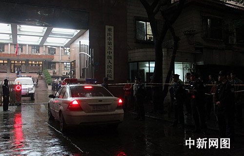 盡管早上的山城雨霧蒙蒙、天氣灰暗。中新社記者在重慶市第五中級法院門口看到,各路媒體記者已在法院內(nèi)外忙碌。可以旁聽庭審的記者在9點(diǎn)以前便通過嚴(yán)格安檢、進(jìn)入法庭;在法院門口,聚集了數(shù)十位本地和外地媒體記者和百名群眾,一位外國媒體記者也在現(xiàn)場采訪圍觀群眾。