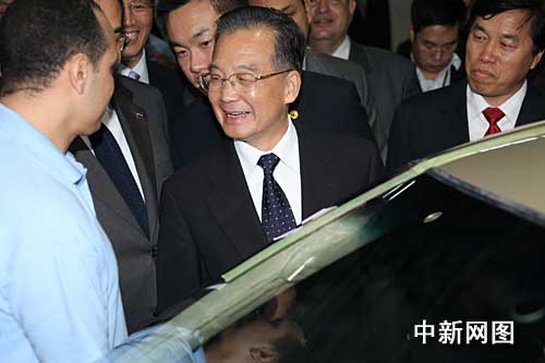 中新網(wǎng)11月7日電 當(dāng)?shù)貢r(shí)間六日下午,剛剛抵達(dá)埃及首都開(kāi)羅的中國(guó)總理溫家寶來(lái)到華晨汽車(chē)埃及工廠參觀。溫家寶將對(duì)埃及進(jìn)行正式訪問(wèn)并出席中非合作論壇第四屆部長(zhǎng)級(jí)會(huì)議開(kāi)幕式。
