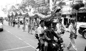 10月25日,在湖南省永州市道縣街頭,有群眾舞龍、放鞭炮。他們是在慶?h委書記易光明被省紀(jì)委雙規(guī),F(xiàn)場(chǎng)圖片被放到網(wǎng)上后,引起廣泛關(guān)注。
