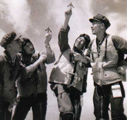 突然,“叮叮!敝笓]所與休息室的直通電話急促地響了。指揮所命令宋義民等四機(jī)進(jìn)入一等。飛行員奔向各自的飛機(jī)。隨著一發(fā)綠色信號(hào)彈升起,四架飛機(jī)象離弦的利箭,吼叫著騰空而起,直往東南戰(zhàn)區(qū)飛去……