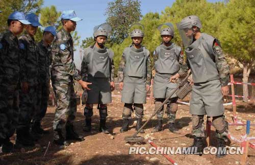我第六批赴黎巴嫩維和工兵營以成都軍區(qū)某集團(tuán)軍工兵團(tuán)為主組成。該團(tuán)曾參加過中越邊境大掃雷,3次受派進(jìn)行人道主義援外排雷,已成功擔(dān)負(fù)3批赴黎維和掃雷任務(wù),掃雷排爆經(jīng)驗(yàn)豐富,先后發(fā)現(xiàn)和排除未爆彈及地雷五千余枚,并創(chuàng)造了“零傷亡”的出色成績。