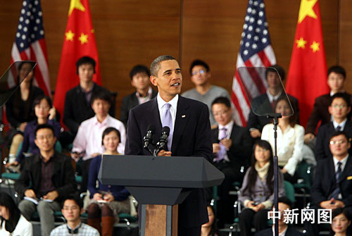 11月16日,美國總統(tǒng)奧巴馬在上?萍拣^與中國青年進行對話,復(fù)旦大學(xué)校長楊玉良主持此次對話活動。