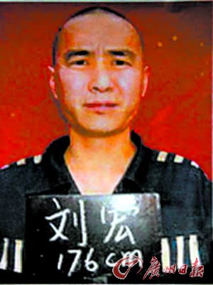 劉宏,38歲,寸頭,頭型大,橢圓型臉,弓形眉,較濃,左眉中心有刀疤,眼睛大,嘴平,鼻子長,三角型耳朵,牙黃,下巴圓。