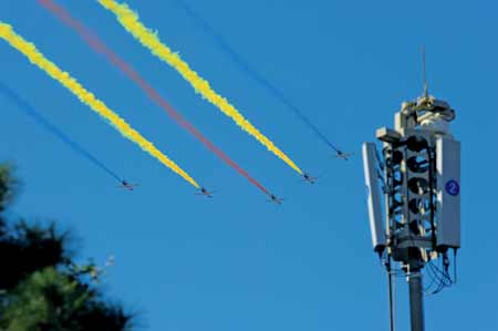 10月1日上午,國慶60周年盛大閱兵式在首都天安門廣場隆重舉行。11時20分,由我國首批殲擊機(jī)女飛行員組成的空中第十二梯隊(duì),駕馭著15架教—8戰(zhàn)機(jī),分3個楔形編隊(duì)飛臨天安門上空,在人們的歡呼聲中呼嘯而過,在空中留下道道絢麗“彩虹”,上演了一場精彩的閱兵壓軸大戲,向世人宣告我國成為世界上擁有殲擊機(jī)女飛行員的國家之一。閱兵后不久,中央軍委委員、空軍司令員許其亮,空軍政治委員鄧昌友簽發(fā)通令,為這個英雄群體記集體一等功。