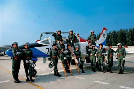 這個英雄群體共有16名殲擊機(jī)女飛行員,分別來自陜西、遼寧、河北、山東、山西、四川、江蘇、浙江、湖北9個省,最大24歲,最小22歲,是空軍2005年招收的第8批女飛行學(xué)員中的佼佼者。4年來,她們輾轉(zhuǎn)航空大學(xué)、兩所飛行學(xué)院,歷經(jīng)基礎(chǔ)教育、初教機(jī)訓(xùn)練、高教機(jī)訓(xùn)練3個階段,實(shí)現(xiàn)了從一名高中生到軍人再到女飛行員的人生飛躍。她們用堅韌、智慧克服了常人難以想象的困難,從仰望藍(lán)天到擁抱藍(lán)天并最終融入藍(lán)天。在她們身上,既承載著中國軍人的共同使命,也閃爍著自己特有的光芒。