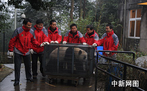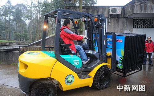 中新網(wǎng)成都11月27日電 (記者楊杰) 27日早上8時30分,在臥龍中國保護大熊貓研究中心白熊坪,工作人員一片忙碌,開始將赴澳大利亞的大熊貓“網(wǎng)網(wǎng)”、“福妮”裝籠,并送上卡車整裝待發(fā)。10時整,歡送“網(wǎng)網(wǎng)”、“福妮”儀式舉行,中澳雙方動物專家和相關(guān)官員出席。隨后,在家鄉(xiāng)人民祝福和不舍的目光中,車隊緩緩駛離雅安,前往成都雙流國際機場。