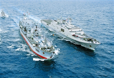 “向左0.1度!”“左右主機各減一轉(zhuǎn)!”“昆侖山”艦艦長喬智強沉著下令,微微調(diào)整航向和主機轉(zhuǎn)速。隨即,“青海湖”艦上的燃油和淡水源源不斷流淌到“昆侖山”艦。演練中“昆侖山”艦共接受燃油300多噸、淡水200多噸、干貨500公斤。某登陸艦支隊支隊長王新建興奮地說:“兩艘萬噸級戰(zhàn)艦進行橫向干貨液貨補給,持續(xù)長達幾個小時,這在我海軍補給史上尚屬首次!(李彥林)