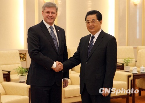 胡錦濤會見加拿大總理 哈珀“實現(xiàn)兒時愿望”