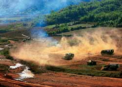 10月中下旬,代號為“前鋒—2009”基本戰(zhàn)役軍團(tuán)聯(lián)合演習(xí)在濟(jì)南軍區(qū)某合同戰(zhàn)術(shù)訓(xùn)練基地揭開戰(zhàn)幕。