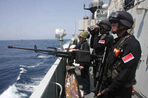 為既能提高護(hù)航效率,又減少兵力使用強(qiáng)度。編隊(duì)指揮組進(jìn)行了《針對(duì)海盜活動(dòng)特點(diǎn)、科學(xué)提高護(hù)航效率》的專題調(diào)研:在巡邏區(qū)增設(shè)臨時(shí)補(bǔ)給區(qū)用于應(yīng)急補(bǔ)給;護(hù)航時(shí)兩艦采用一艦護(hù)航,一艦巡邏警戒和裝備保養(yǎng)輪換休整;一艦在航線中段對(duì)另一艦進(jìn)行接力護(hù)航等方式……在護(hù)航中做到合理配置兵力、努力做到科學(xué)護(hù)航。