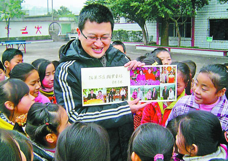 信里裝著2010年的新年賀卡。這是去年12月29日,全國人大原委員長李鵬及其夫人朱琳,特意寄給萬州區(qū)長嶺中心小學師生們的。賀卡的內(nèi)頁,有他們親筆題寫的新年寄語:“國運昌盛,闔家幸!,表達了李鵬夫婦對三峽庫區(qū)教育的關(guān)懷和對師生們的問候。