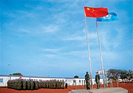 期間,張勇團(tuán)結(jié)帶領(lǐng)官兵創(chuàng)造了一項(xiàng)又一項(xiàng)紀(jì)錄:在任務(wù)區(qū)部署時(shí)間最長(zhǎng),應(yīng)對(duì)突發(fā)事件最多,執(zhí)行長(zhǎng)途運(yùn)輸任務(wù)歷程最遠(yuǎn),受聯(lián)合國(guó)表彰人數(shù)最多……春節(jié)那天,蘇聯(lián)團(tuán)為中國(guó)維和官兵授予“和平榮譽(yù)勛章”。