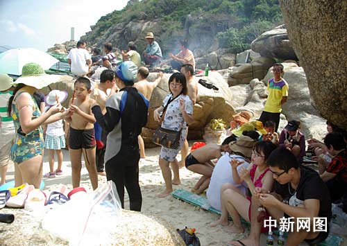 在百福灣現(xiàn)場(chǎng),一位來(lái)自天津的游客邊吃燒烤、邊告訴記者,他們是住在亞龍灣一家五星級(jí)酒店的客人,是酒店服務(wù)員給聯(lián)系的百福灣潛水項(xiàng)目,每人260元可以玩一天,不但有潛水觸摸海底珊瑚、還可以包一頓海邊燒烤。
