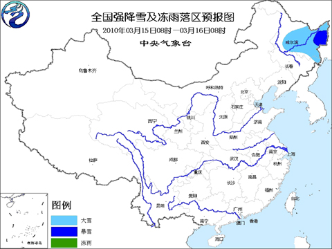 中央氣象臺3月15日06時繼續(xù)發(fā)布暴雪藍(lán)色預(yù)警:預(yù)計,15日白天到夜間,吉林東北部、黑龍江中東部等地有大雪(5~9毫米),其中黑龍江東北部的部分地區(qū)有暴雪(10~15毫米)。