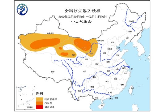 另據(jù)國家林業(yè)局荒漠化監(jiān)測(cè)中心監(jiān)測(cè),受19日發(fā)生在中國西北地區(qū)東部、內(nèi)蒙古中西部沙塵天氣的影響,20日清晨,華北及京津地區(qū)出現(xiàn)浮塵天氣,局部地區(qū)強(qiáng)度較大。此后,沙塵天氣向南波及到河南、山東兩省。