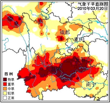 3月16日,云南省氣象局稱,該省干旱為:秋、冬、春連旱,全省綜合氣象干旱重現(xiàn)期為80年以上一遇,其中滇中、滇東、滇西東部的大部地區(qū)為100年以上一遇。據(jù)了解,旱災(zāi)已經(jīng)造成云南省3000多萬畝農(nóng)作物受災(zāi)。3月,受災(zāi)人數(shù)已超越700萬人。
