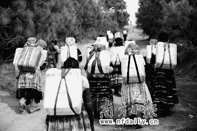 這是南方報(bào)業(yè)東線報(bào)道組在云南宣威市熱水鎮(zhèn)半坡村看到的場景。昨日,報(bào)道小組來到海拔2300米的云南東北部苗鄉(xiāng)。這里自然條件比較惡劣,經(jīng)濟(jì)欠發(fā)達(dá),百年一遇的大旱使得苗寨人民生活更加困難。