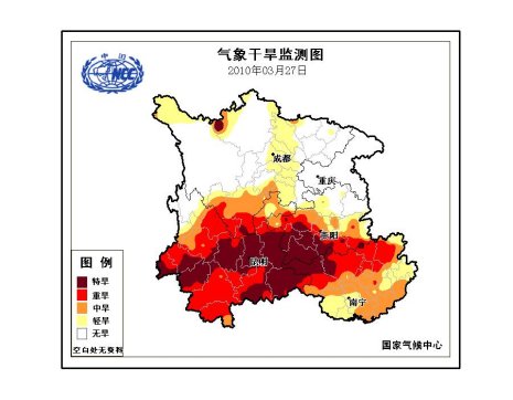 根據3月27日監(jiān)測,云南大部、貴州西南部、廣西西北部、川西高原南部等地存在重度以上氣象干旱。