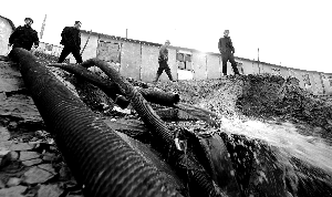 ●3月29日晚8時(shí) 4臺(tái)水泵安裝到位,開(kāi)始抽水。