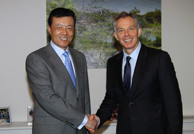 布萊爾熱烈歡迎劉大使來英履新。他說,他剛剛訪華歸來,中國之行令人印象深刻。他一直非常關(guān)注中國的發(fā)展,近年來幾乎每年都訪問中國,每次能切實感受到中國無時不在發(fā)生的新變化,看到一個發(fā)展勢頭強勁、始終充滿活力的中國。他認為,世界新一代領(lǐng)導人加強對中國的認識和了解至關(guān)重要。當今世界日新月異,中西方應(yīng)該審慎對待雙方認知差距的演進,努力保持和發(fā)展互利共贏的伙伴關(guān)系。他相信,無論英國大選結(jié)果如何,英國政府積極發(fā)展對華關(guān)系的政策不會改變,任何政黨都會為加強英中兩國間的交流與合作而努力。