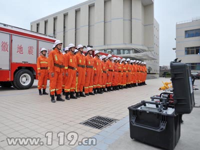 災情發(fā)生后,合肥市消防支隊決定立即抽調(diào)50名富有救援經(jīng)驗的特勤隊員組成合肥消防應急救援隊,攜帶生命探測儀、鑿巖機、液壓擴張鉗、帳篷、海事衛(wèi)星電話等地震救援裝備,隨時待命出發(fā)。