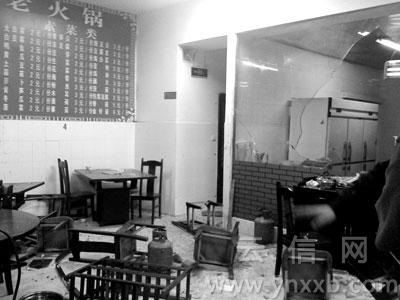 “砸!”一聲“令”下,幾十人拿著砍刀和鋼管,在火鍋店就開始到處亂砍。“噼里啪啦”火鍋店的玻璃窗粉碎性掉落,啤酒瓶、餐具接二連三被砸碎,正在沸騰的火鍋被掀翻在地,墻上、地上灑滿紅油。頓時店里一片混亂,客人、服務員紛紛沖進廚房躲避。
