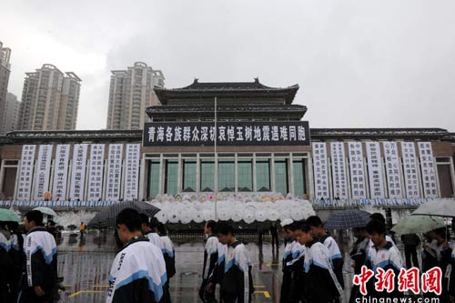 按照青海省政府昨日公告,今日上午10時整起,青海全省人民默哀三分鐘,屆時汽車、火車、輪船鳴笛,防空警報鳴響。西寧的悼念活動在新寧廣場舉行,玉樹的悼念活動在結(jié)古鎮(zhèn)舉行,其它地方舉辦規(guī)模適中的集中悼念儀式。(完)