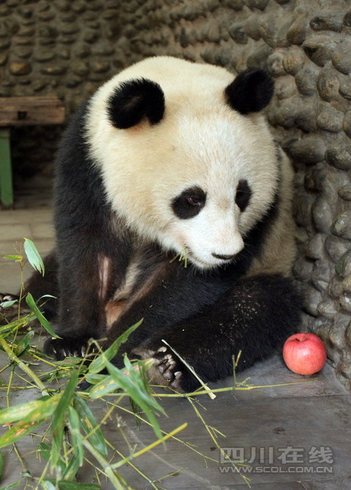 地震后的北川首次發(fā)現(xiàn)大熊貓,而且這只大熊貓身體狀況危急!昨日,這只大熊貓在成都熊貓基地隔離檢疫區(qū)接受專家的全方位檢查;孬F醫(yī)院院長楊智稱,通過兩天的緊急救治,大熊貓生命體征基本穩(wěn)定,但目前仍沒有脫離生命危險。專家估計,這只大熊貓是被媽媽攆出家門的。