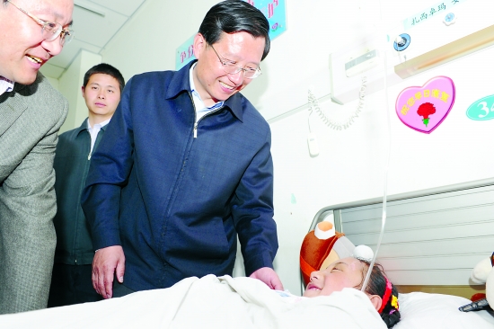 4月30日,省委書記、省人大常委會主任、省抗震救災(zāi)領(lǐng)導(dǎo)小組組長強衛(wèi)在省委常委、省委秘書長沈何,副省長馬順清的陪同下,帶著黨和政府的深切關(guān)懷,先后來到省人民醫(yī)院、解放軍第四陸軍醫(yī)院,親切看望廣大醫(yī)護人員和部分在這里救治的玉樹地震災(zāi)區(qū)受傷群眾。