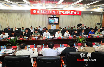 5月12日,湖南召開全省防汛抗旱工作電視電話會(huì)議。(圖片來(lái)源:紅網(wǎng))