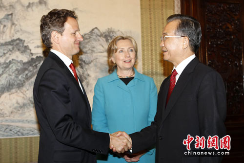 中新網(wǎng)北京5月25日電 (記者 張朔)中國總理溫家寶25日下午在中南海紫光閣會見來華出席第二輪中美戰(zhàn)略與經(jīng)濟對話的美國國務(wù)卿克林頓和財長蓋特納。