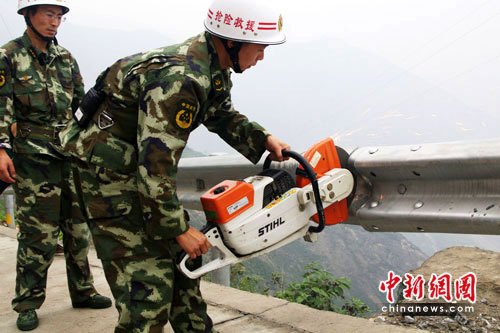據(jù)汶川縣公路局局長王永新介紹,排險工作結(jié)束后,汶川縣公路部門將爭取用6個小時左右時間搶通出一條臨時過往便道。目前,汶川縣公路部門已出動30名路政、道班人員和4輛裝載車原地待命,只等山體排險工作結(jié)束,立刻開展垮塌路段的土石清理,全力搶通道路。