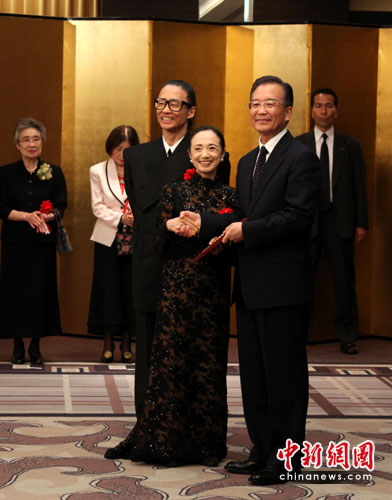 最后,溫家寶總理一一與日本友人握手致謝,60年代起積極投身日中友好運(yùn)動(dòng)的日中友好人士代表坂田和子用中文對(duì)總理說(shuō),“中日友好加油!”溫總理點(diǎn)頭致意,“我們一起加油!”