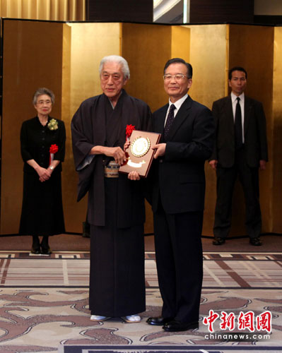 溫家寶總理說(shuō),今天這個(gè)頒獎(jiǎng)儀式非同尋常,中日邦交正常化走過(guò)了一場(chǎng)艱難曲折的道路,在這過(guò)程中,起重要作用的是人民和朝野的力量。你們才是中日關(guān)系發(fā)展的功臣,歷史將記住你們,中日兩國(guó)人民將記住你們,我代表中國(guó)政府和中國(guó)人民謹(jǐn)向你們表達(dá)崇高的敬意和深深的謝意。