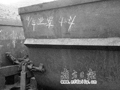 記者昨日在現場看到,礦井出口處擺著9名死難礦工的遺體,遺體旁是一排車斗,一個車斗上還有工頭用白色粉筆記錄下的死者李業(yè)軍5月26號的產量———早班4斗。