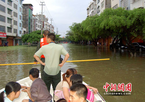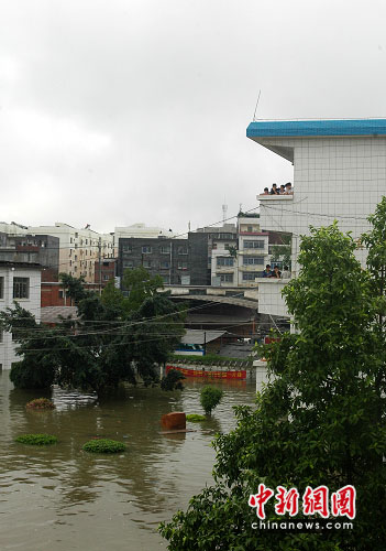 記者在來賓市實(shí)驗(yàn)中學(xué)看到,該校已成為一片湖泊。水深處約有1.6米,已經(jīng)淹過成年男子肩膀。水中七零八落飄散著住戶的生活用品,一樓居民已經(jīng)全部撤離。消防官兵自早上8時(shí)許開始對被困師生進(jìn)行救援,直至下午5時(shí),該校1100名被困師生及家屬全部撤至安全地帶。學(xué)校內(nèi)停電并且無法出行,影響了不少居民的正常生活。周邊幾家商鋪圍擋自家門口防止積水流進(jìn)店內(nèi),用各種器皿向外倒水。