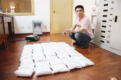 10日14時(shí)許,羅某鋒打電話給李某峰,相約當(dāng)晚7時(shí)許在石獅石泉路一家酒店停車場(chǎng)交接毒品。到了約定時(shí)間,羅某鋒和黃某任一起駕駛載有40公斤“K粉”的小轎車到達(dá)指定地點(diǎn)后,當(dāng)羅某鋒從后車廂里提出一袋裝有約20公斤“K粉”的旅行袋進(jìn)行交易時(shí),被泉州邊防官兵當(dāng)場(chǎng)抓獲,而黃某任趁機(jī)駕車逃跑。隨后,邊防官兵又在兩家酒店分別抓獲李某峰和黃某國(guó),并于第二天凌晨3時(shí)許,在晉江羅山高速路旁抓獲黃某任,并在其駕駛的小轎車?yán)锊楂@另外約20公斤“K粉”。(通訊員 李實(shí) 記者 宋軍營(yíng) 文/圖)