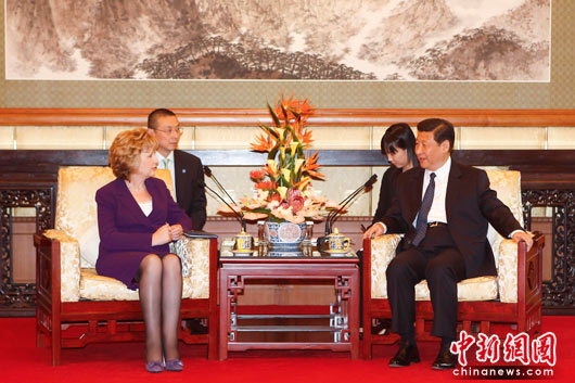 麥卡利斯請習(xí)近平轉(zhuǎn)達(dá)對胡錦濤主席的問候。她表示,愛中建交30年來,兩國關(guān)系發(fā)展順利,特別是近年來,雙方政治對話密切,雙邊貿(mào)易增長迅速,人文、教育等領(lǐng)域交流豐富多彩。愛爾蘭高度重視加強(qiáng)同中國的友好合作,將繼續(xù)推進(jìn)以中國為核心的“亞洲戰(zhàn)略”,希望同中方保持高層交往,擴(kuò)大互利合作,加強(qiáng)在聯(lián)合國、亞歐會議等多邊框架內(nèi)的溝通配合,共同促進(jìn)世界和平、穩(wěn)定與繁榮,使兩國關(guān)系在下一個(gè)30年更加堅(jiān)實(shí)、充滿活力地向前發(fā)展。