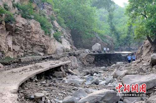 據(jù)介紹,13日晚20時(shí)許,淶水縣九龍鎮(zhèn)突降百年不遇特大暴雨,并伴有大風(fēng)冰雹,頃刻間,山洪裹著巨石、泥漿呼嘯而下,席卷了九龍鎮(zhèn)沿河道的六個(gè)村莊,致使嶺南臺(tái)、莊里、莊頭、高鋪、柏林城、南莊六個(gè)村受災(zāi)嚴(yán)重。據(jù)初步估算,受災(zāi)人口3100多人、牲畜2000多頭(只),倒塌損壞房屋499間、橋梁5座、車輛31輛,毀壞道路10.7公里、耕地1312畝、樹(shù)木16925棵,另有兩人失蹤,直接經(jīng)濟(jì)損失達(dá)8197.8萬(wàn)元。