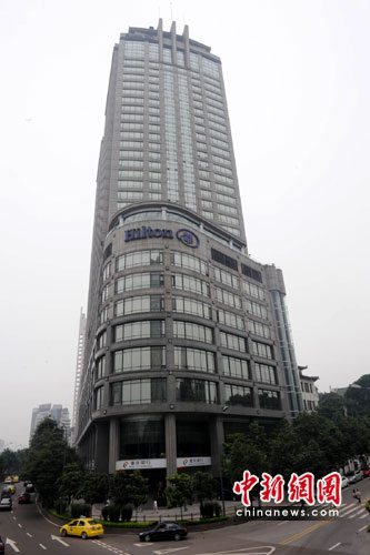 重慶希爾頓酒店位于重慶渝中區(qū)兩路口鬧市,當(dāng)?shù)夭簧僦匾⻊?wù)、商業(yè)活動都曾在此舉辦。最新的工商登記資料顯示,該酒店為地產(chǎn)商重慶慶隆屋業(yè)發(fā)展有限公司投資,慶隆公司的股東包括香港華輝投資有限公司、自然人彭治民和四川廣安陽光發(fā)展有限公司,其中“廣安陽光”的法人代表亦是彭治民。
