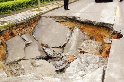而在附近一工廠值班的陳先生說(shuō),事發(fā)時(shí),整個(gè)值班室都在顫抖。據(jù)他介紹,橫一路在開(kāi)發(fā)區(qū)投入使用已有10余年,“可能是最近幾天下雨,路面地下淘空了,才突然下陷!