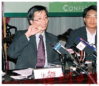 食品安全統(tǒng)籌小組技術(shù)小組成員譚偉文、陳惟蒨、湯家耀、伍秉賢、戴健業(yè)、何慧卿等23日下午3時(shí)許于民署大樓禮堂,公布近日衛(wèi)生局及民署化驗(yàn)所收集的雞蛋樣本化驗(yàn)結(jié)果。