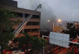 消防員升起云梯從高處灌救。(圖片來源:澳門日報)