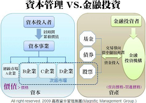 由人組合而成,會運用到人的智慧的、而非僅止于資產(chǎn)價格低買高賣的,都屬于事業(yè)的范疇,也是資本管理的范疇。因此,不只是上市的企業(yè),未上市的企業(yè),也包含在內(nèi)。例如,入股于朋友開設(shè)的早餐店,作為長期股東,信賴管理者的誠信與努力,投入資本共同承擔營運上的挑戰(zhàn),也享受獲利所帶來的經(jīng)濟盈余。