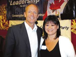 中新網(wǎng)7月9日電 據(jù)加拿大《星島日?qǐng)?bào)》報(bào)道,加拿大國(guó)庫(kù)局局長(zhǎng)兼亞太門戶部長(zhǎng)戴國(guó)衛(wèi)(Stockwell Day),7日參加聯(lián)邦保守黨溫哥華南(Vancouver South)選區(qū)華人候選人楊蕭慧儀的籌款餐會(huì)。
