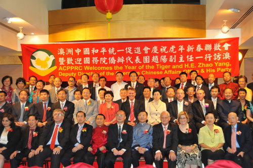 趙陽在致辭時(shí)盛贊澳大利亞華僑華人為促進(jìn)中澳兩國的發(fā)展建設(shè)和中澳友好往來所做的貢獻(xiàn),希望在澳僑胞發(fā)揚(yáng)中華民族優(yōu)秀文化傳統(tǒng),積極融入當(dāng)?shù)厣鐣,遵守?dāng)?shù)胤珊土?xí)俗,為促進(jìn)澳大利亞多元文化發(fā)展進(jìn)步和中澳各領(lǐng)域的合作交流做出更大貢獻(xiàn)。趙陽的講話受到與會澳大利亞政要和僑胞的積極好評和贊賞。