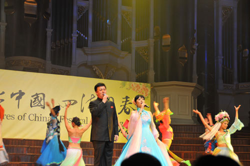 當(dāng)?shù)貢r間2月20日,21日由國務(wù)院僑辦、中國海外交流協(xié)會組派的“文化中國•四海同春”赴大洋洲藝術(shù)團在著名的悉尼市政廳劇院連續(xù)舉行了兩場慰僑演出。首場演出是2月17日,中國農(nóng)歷新年的大年初四,在澳大利亞墨爾本達(dá)拉斯布魯克斯音樂廳。雷鳴般的掌聲回蕩在劇院內(nèi),經(jīng)久不息。動聽的歌聲、悠揚的樂曲,曼妙的舞姿令觀眾如醉如癡。三場演出都獲得了巨大成功,引起轟動。當(dāng)?shù)刂髁魃鐣娂姲l(fā)來賀信。